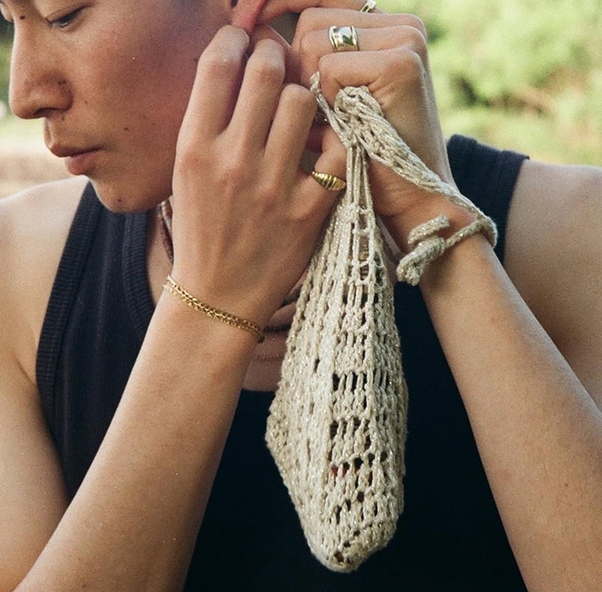 ビーズを使用していて、 竹と麻とコットンが入った毛糸で肌触りが良いです♡