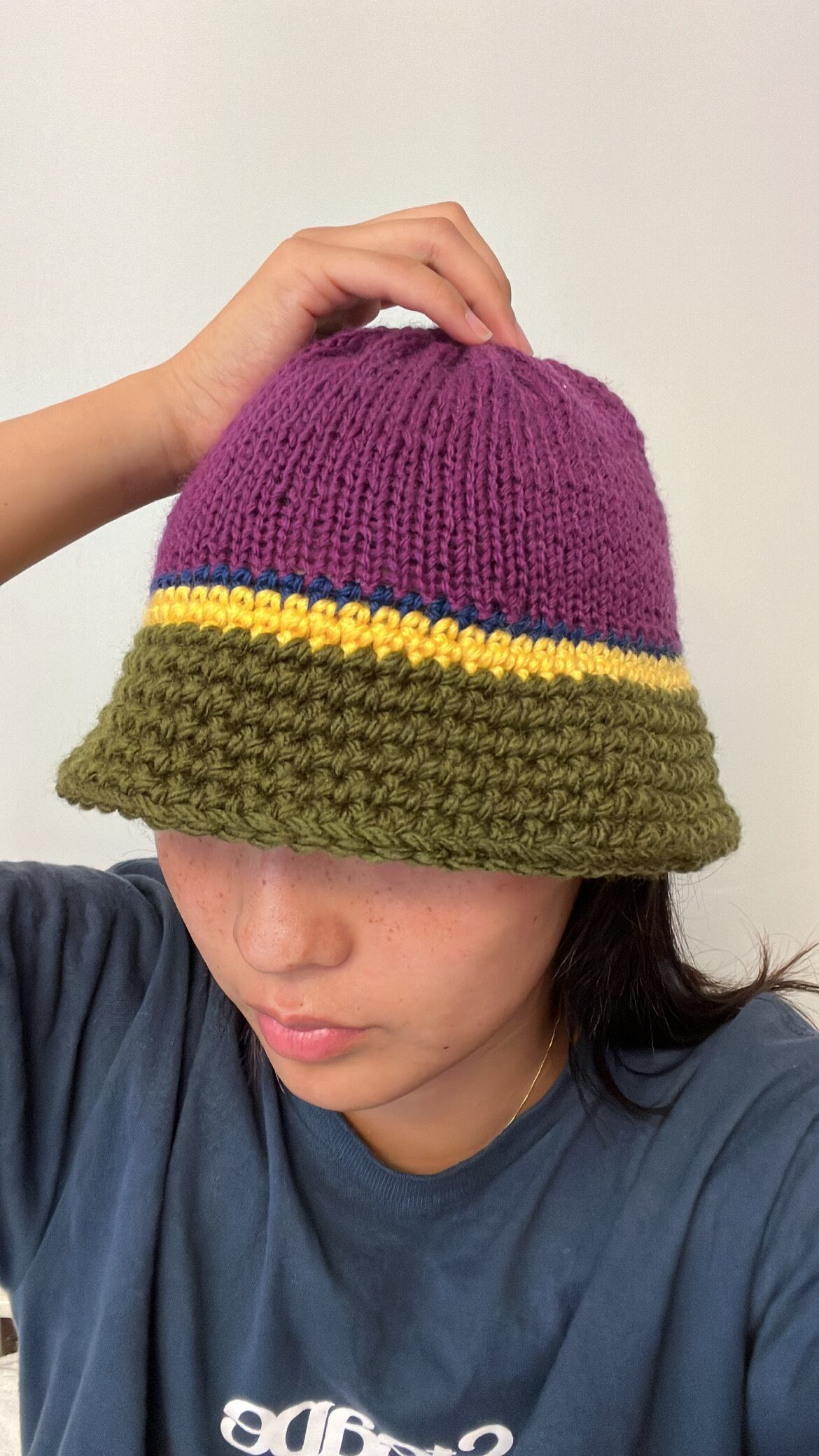 かぎ針編み×棒針編みの組み合わせハット^_^